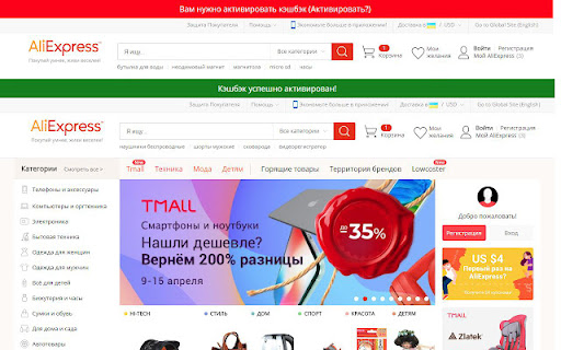 Браузерное расширение cashback-bot напомнит о возможности получить кэшбэк во время шопинга. Покупайте в любимых магазинах: AliExpress, Banggood, Gearbest, М.Видео и других. При посещении магазина, плагин напомнит об активации кэшбэка, чтобы вы его не упустили.