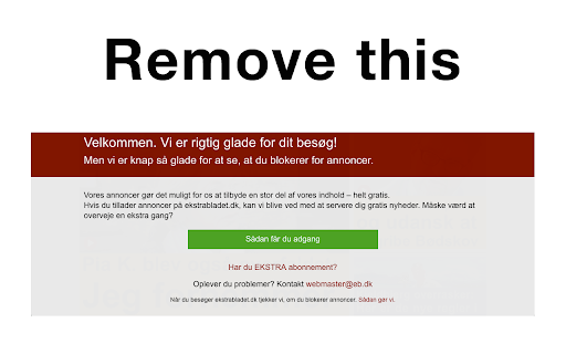 | Opis | Blocks the new adblock block on Ekstra Bladet. |